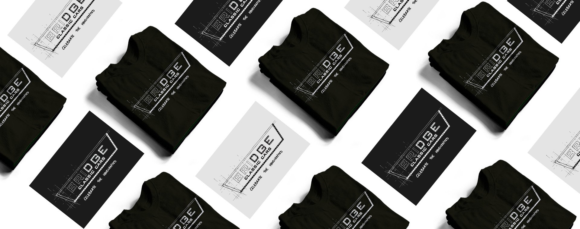 Bridge Classic Cars are a Suffolk car restoration company that has progressed into car competitions and a members club. Since covid the team have really ramped up their presence in the classic car world. A merchandise range had already been started to from t-shirts to limited edition jackets. The MD Craig wanted a t-shirt that showed a restoration of their logo. The "idea behind it is that a designer has come up with an idea and then gone on to build it".